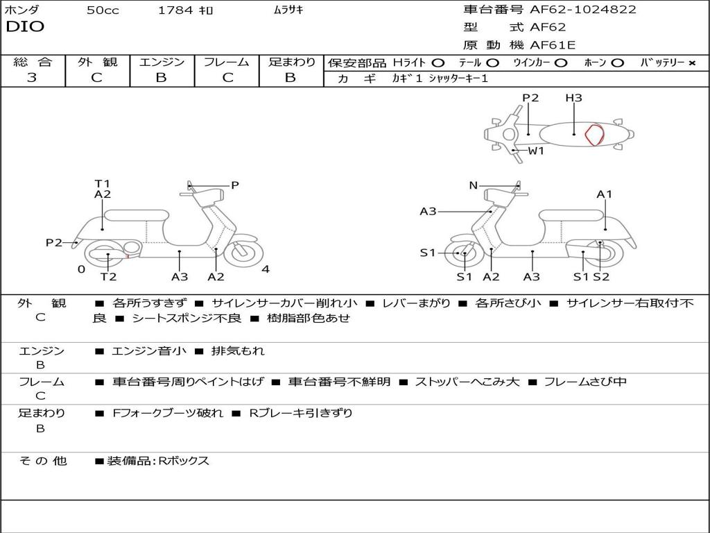 | Номер рамы / VIN | AF62-1024822 |