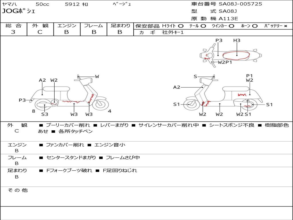 | Номер рамы / VIN | SA08J-005725 |