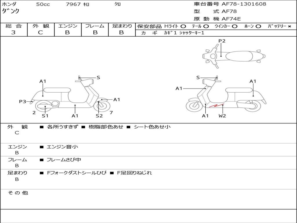 | Номер рамы / VIN | AF78-1301608 |