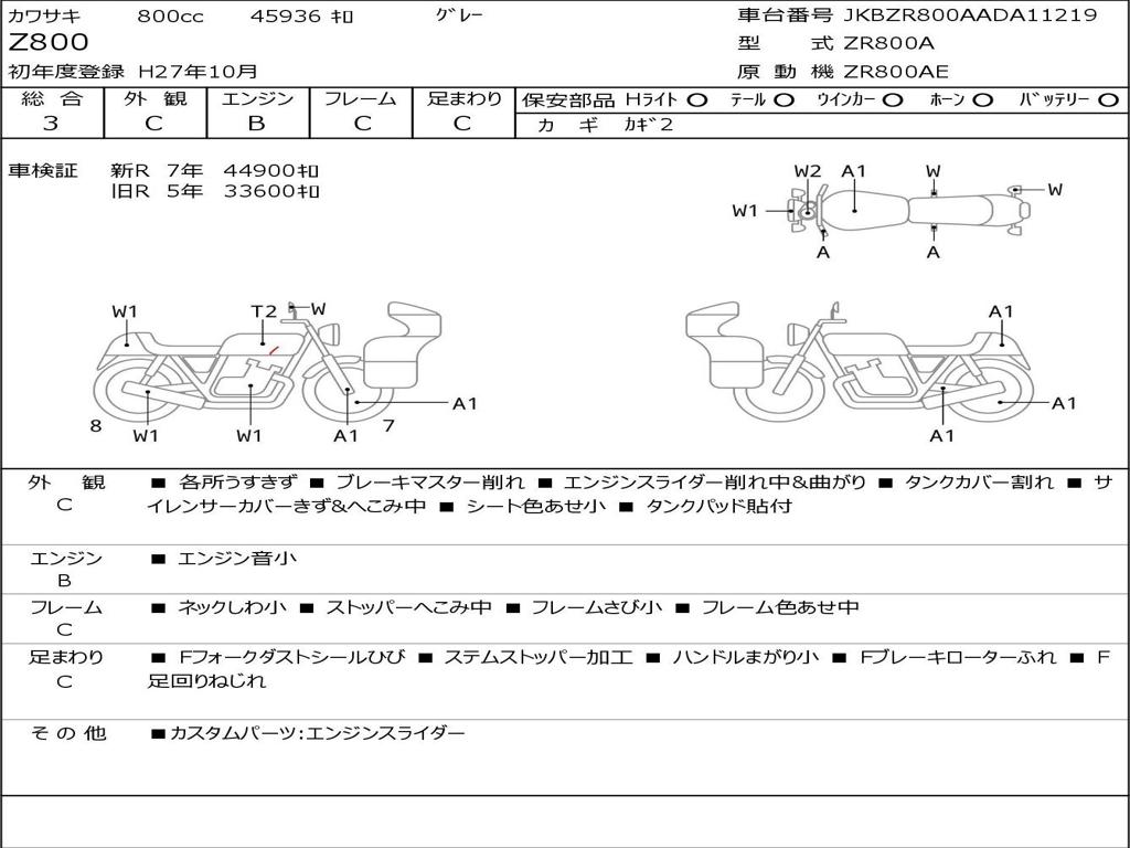 | Номер рамы / VIN | JKBZR800AADA11219 |