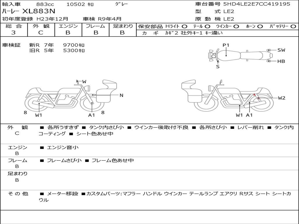 | Номер рамы / VIN | 5HD4LE2E7CC419195 |