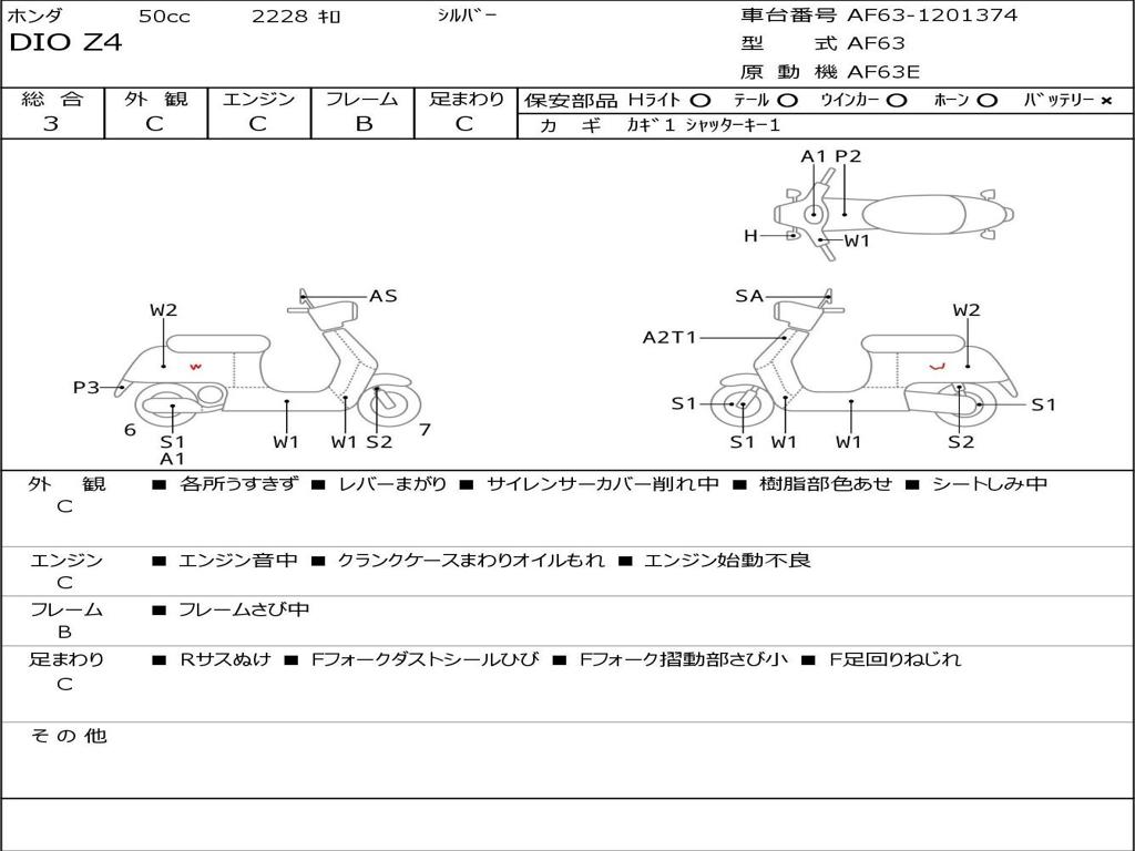 | Номер рамы / VIN | AF63-1201374 |