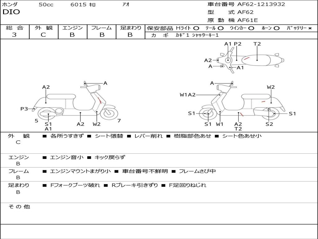 | Номер рамы / VIN | AF62-1213932 |
