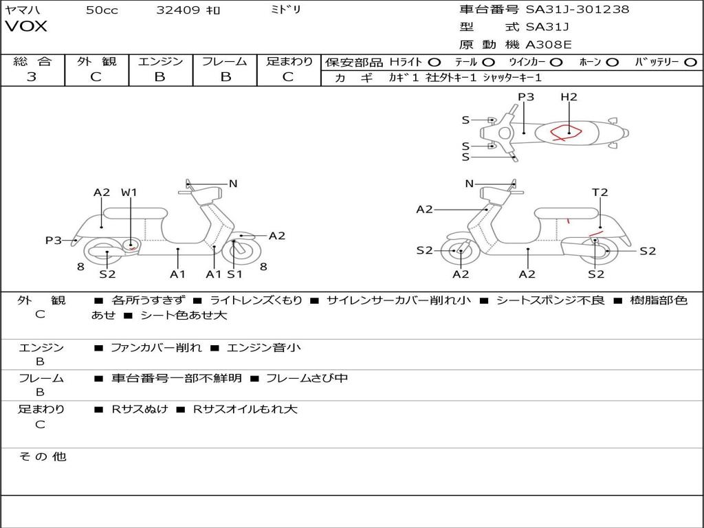 | Номер рамы / VIN | SA31J-301238 |