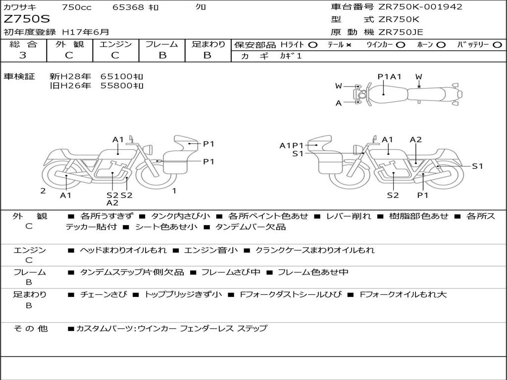 | Номер рамы / VIN | ZR750K-001942 |
