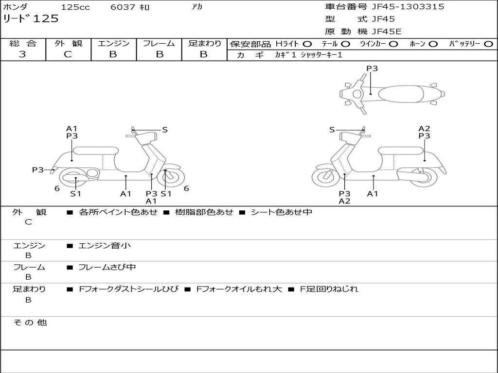 | Номер рамы / VIN | JF45-1303315 |