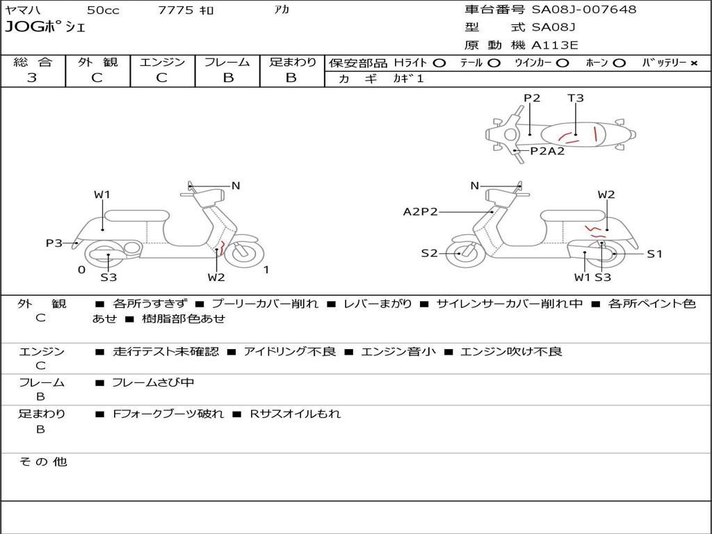 | Номер рамы / VIN | SA08J-007648 |
