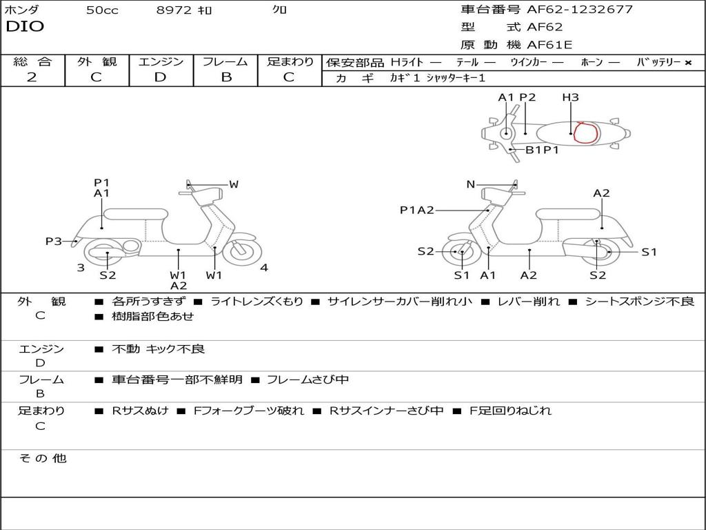 | Номер рамы / VIN | AF62-1232677 |