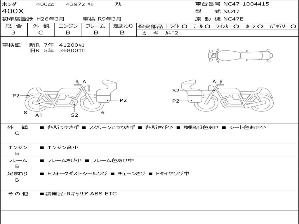 | Номер рамы / VIN | NC47-1004415 |