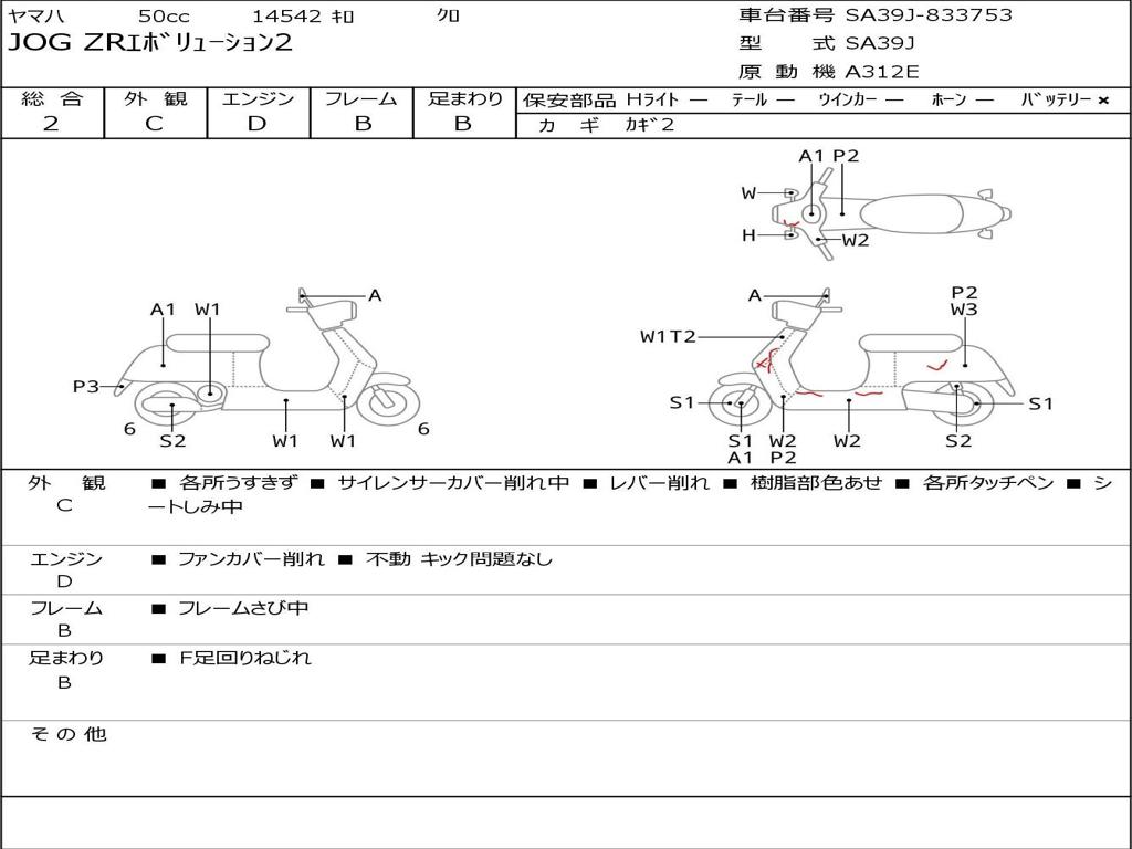 | Номер рамы / VIN | SA39J-833753 |