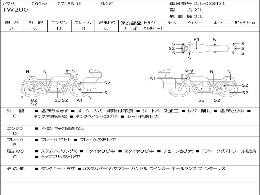 | Номер рамы / VIN | 2JL-033431 |