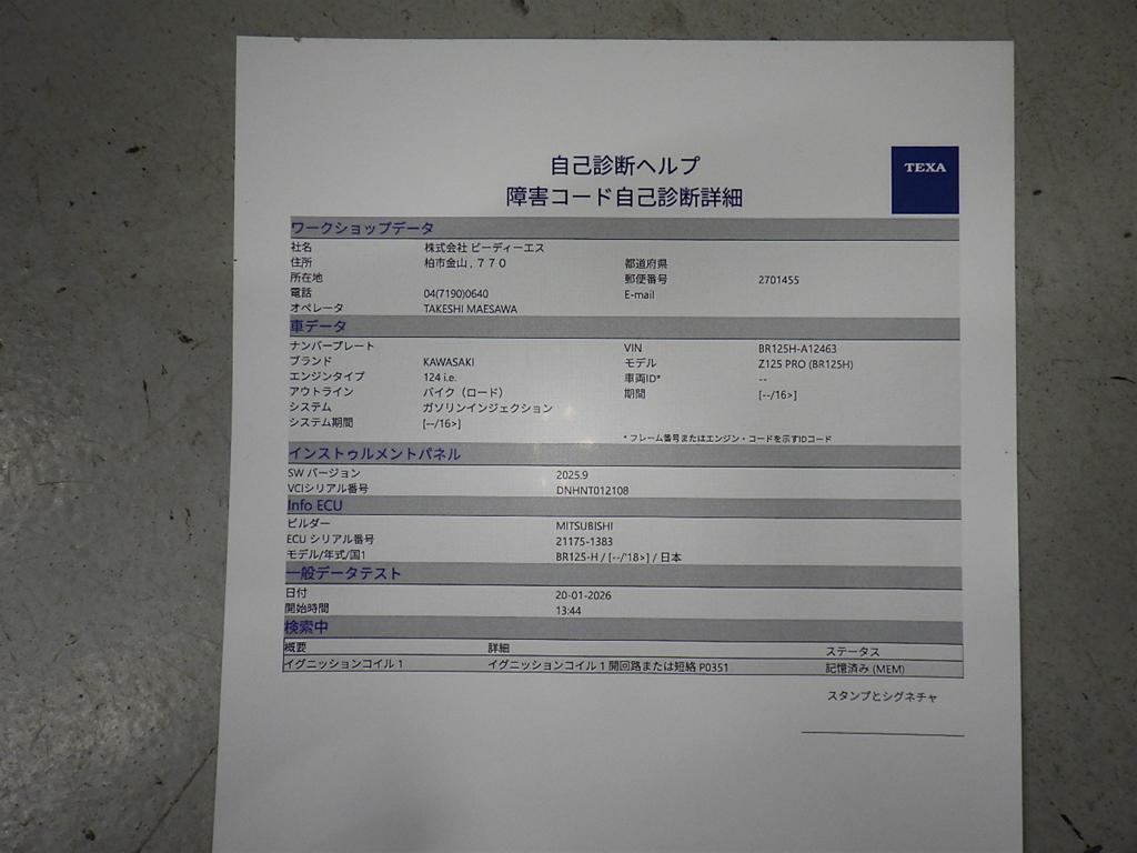 | Номер рамы / VIN | BR125H-A12463 |