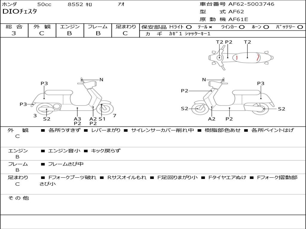 | Номер рамы / VIN | AF62-5003746 |