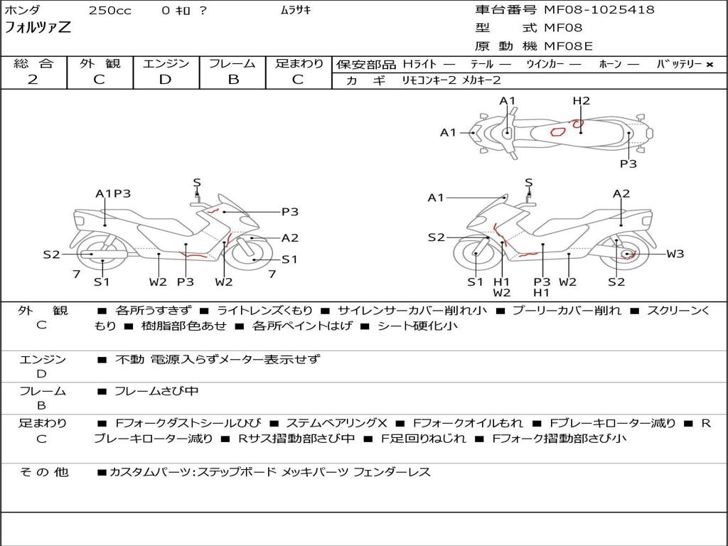 | Номер рамы / VIN | MF08-1025418 |