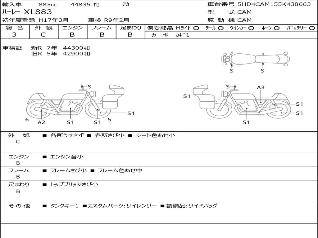 | Номер рамы / VIN | 5HD4CAM155K438663 |