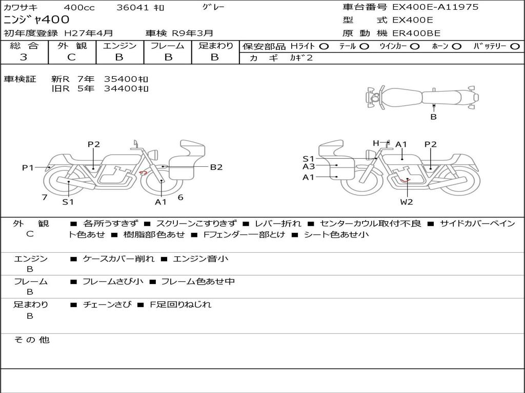 | Номер рамы / VIN | EX400E-A11975 |