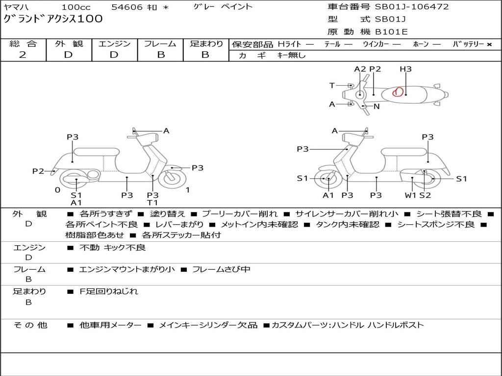 | Номер рамы / VIN | SB01J-106472 |