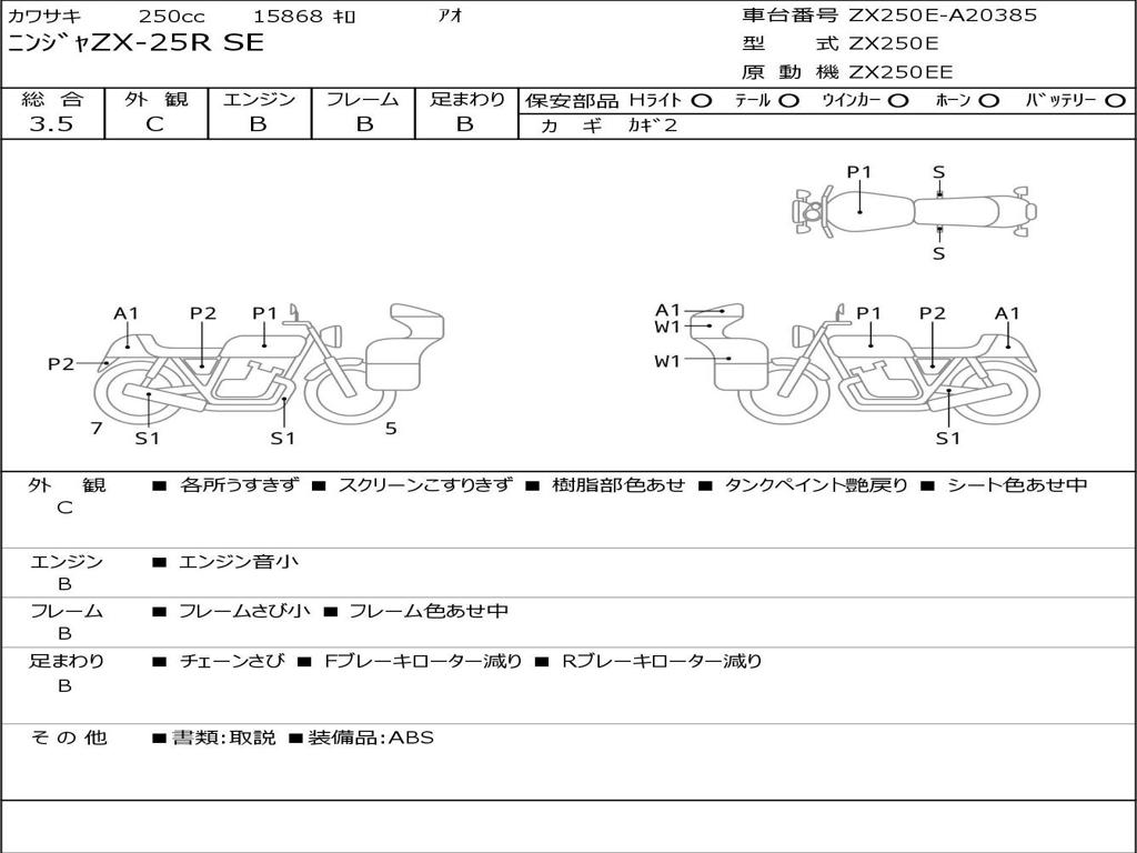 | Номер рамы / VIN | ZX250E-A20385 |