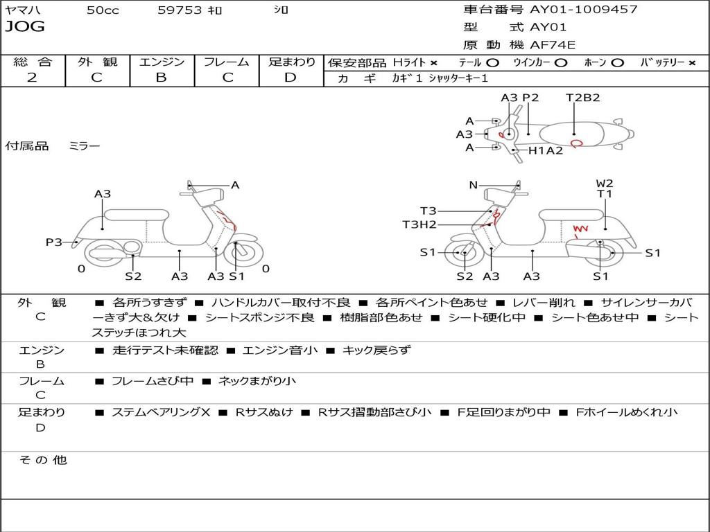 | Номер рамы / VIN | AY01-1009457 |