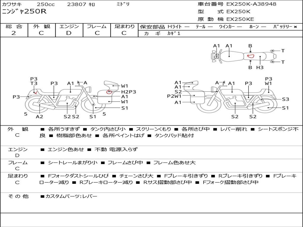 | Номер рамы / VIN | EX250K-A38948 |