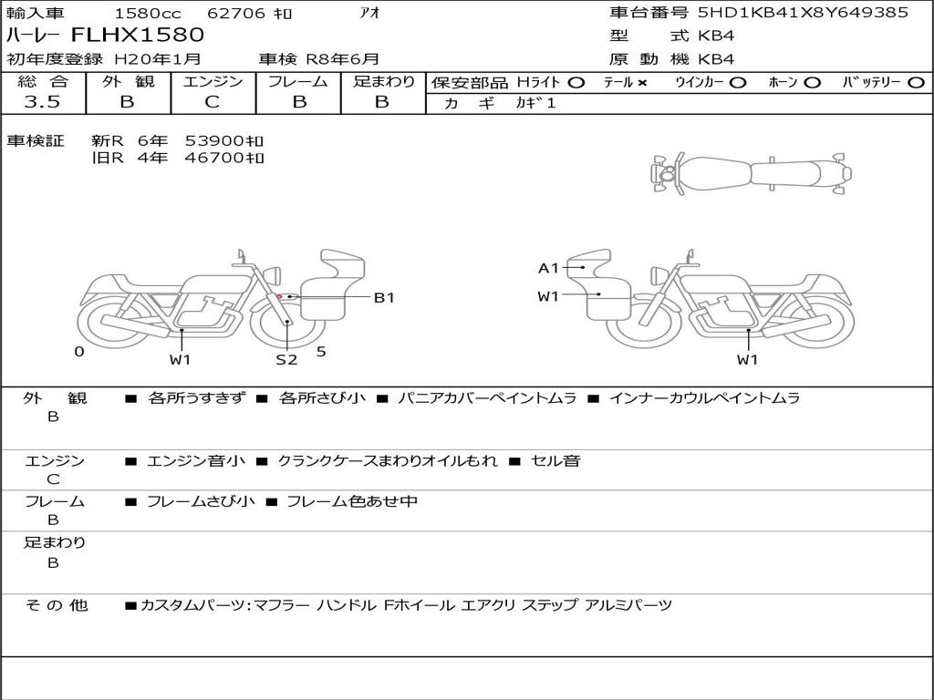 | Номер рамы / VIN | 5HD1KB41X8Y649385 |