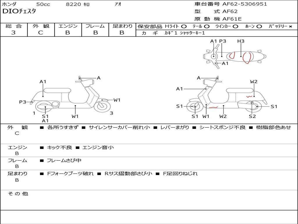 | Номер рамы / VIN | AF62-5306951 |