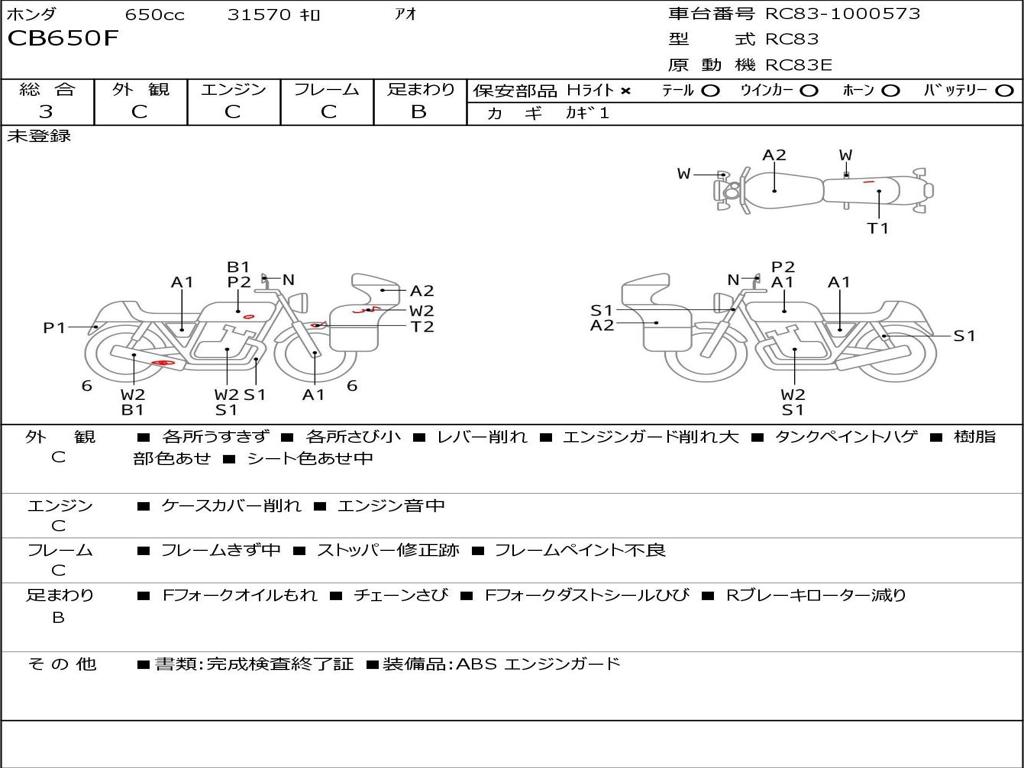 | Номер рамы / VIN | RC83-1000573 |