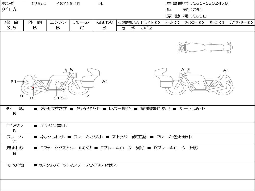 | Номер рамы / VIN | JC61-1302478 |