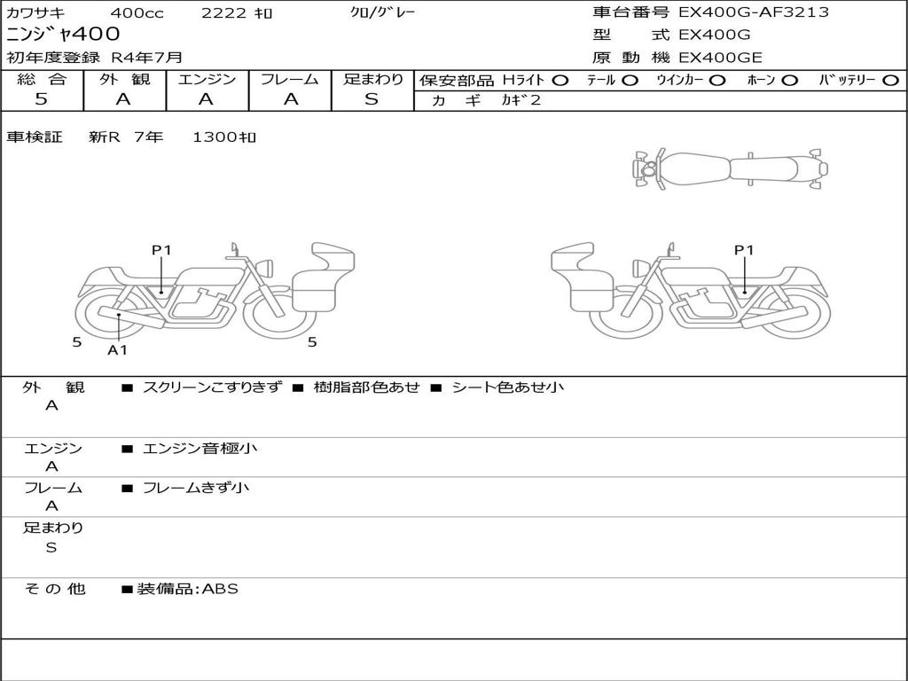 | Номер рамы / VIN | EX400G-AF3213 |