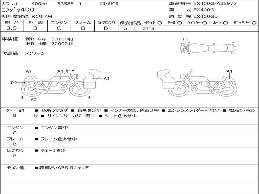 | Номер рамы / VIN | EX400G-A35973 |