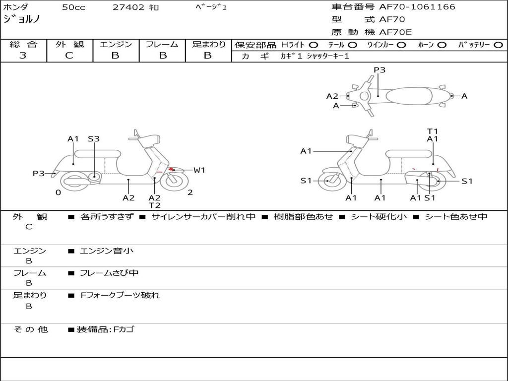 | Номер рамы / VIN | AF70-1061166 |
