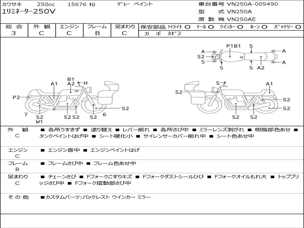 | Номер рамы / VIN | VN250A-005490 |