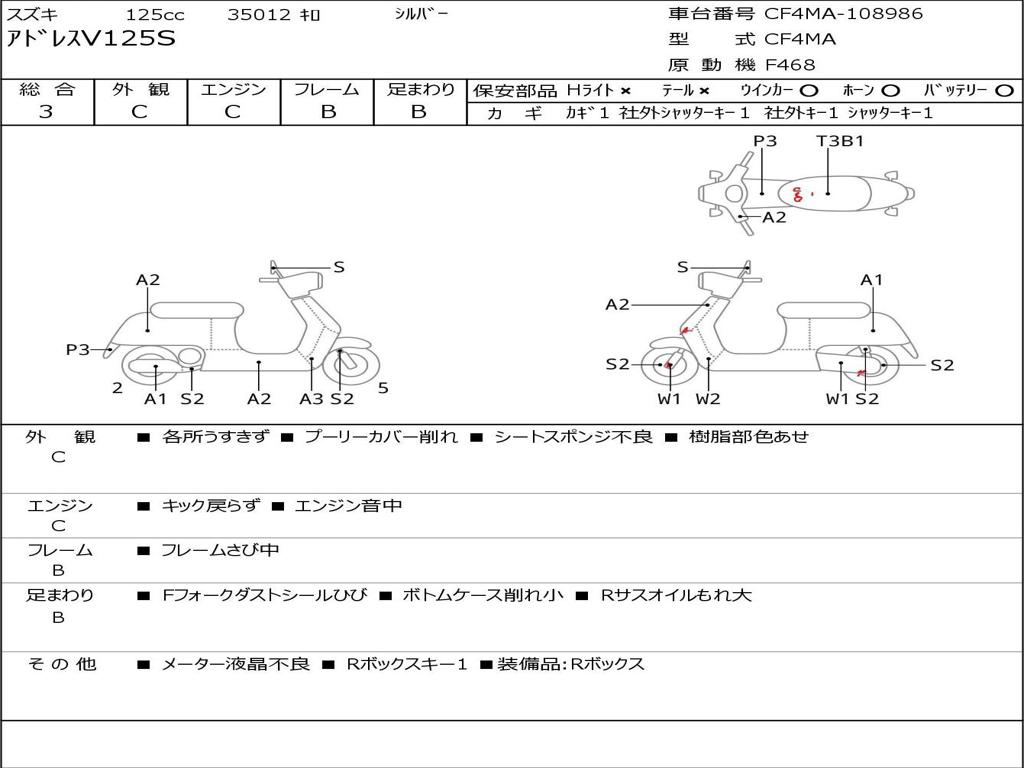 | Номер рамы / VIN | CF4MA-108986 |