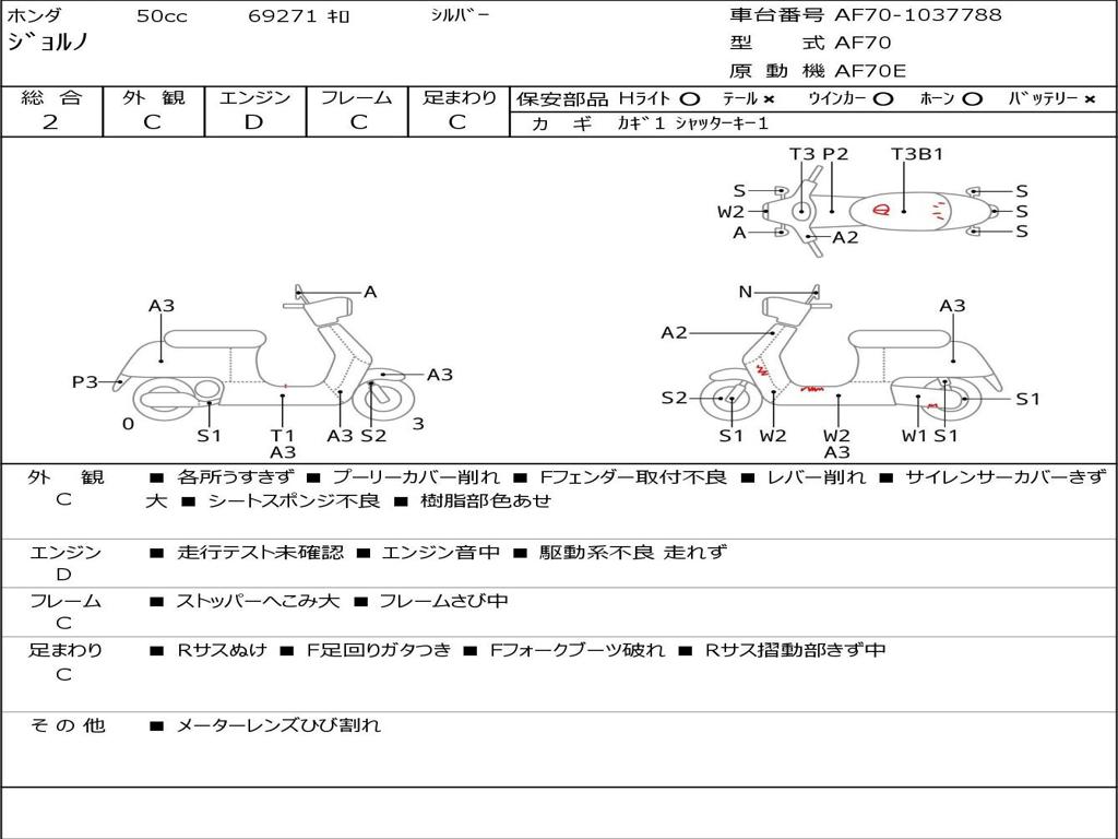 | Номер рамы / VIN | AF70-1037788 |