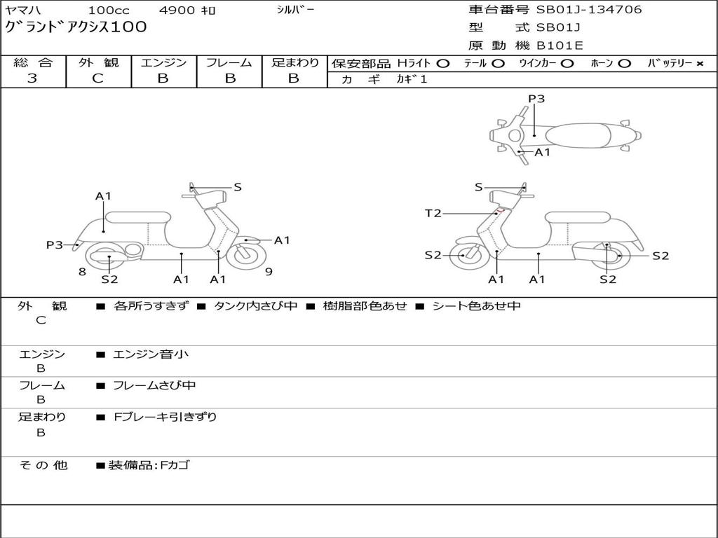 | Номер рамы / VIN | SB01J-134706 |