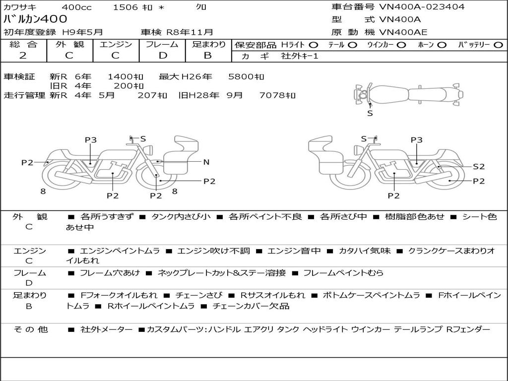 | Номер рамы / VIN | VN400A-023404 |