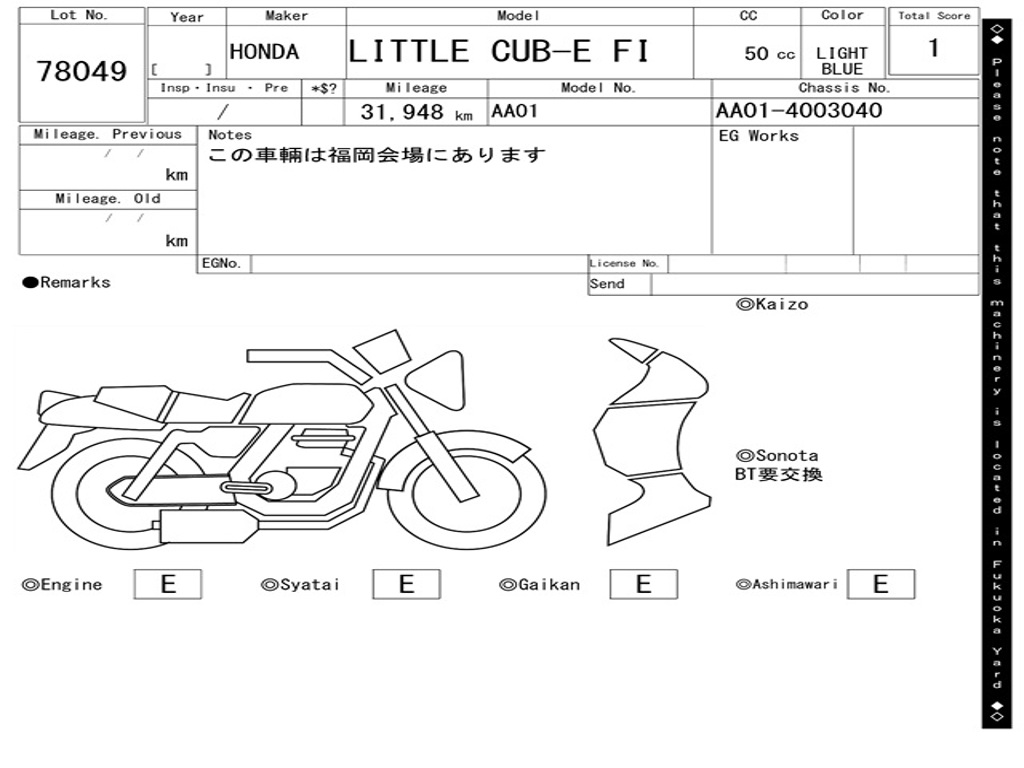 | Номер рамы / VIN | AA01-4003040 |