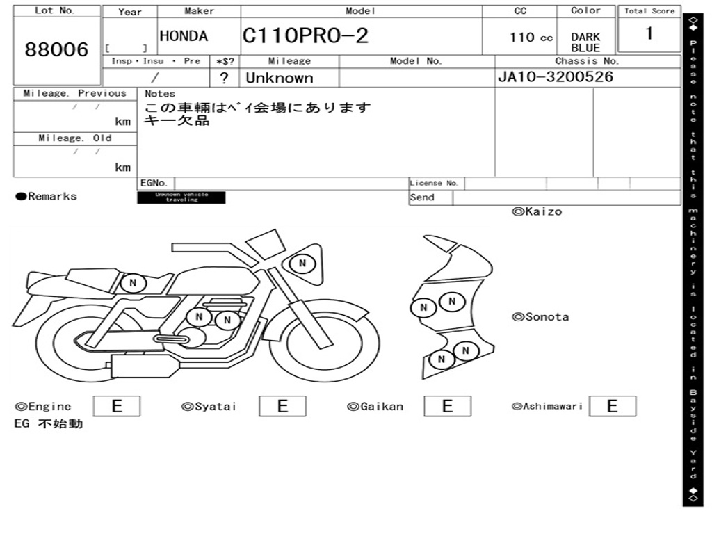 | Номер рамы / VIN | JA10-3200526 |
