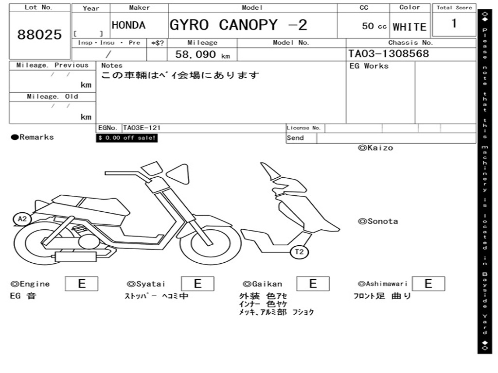| Аукцион | ARAI BAYSIDE |