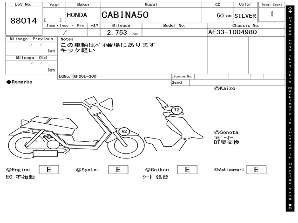 | Аукцион | ARAI BAYSIDE |