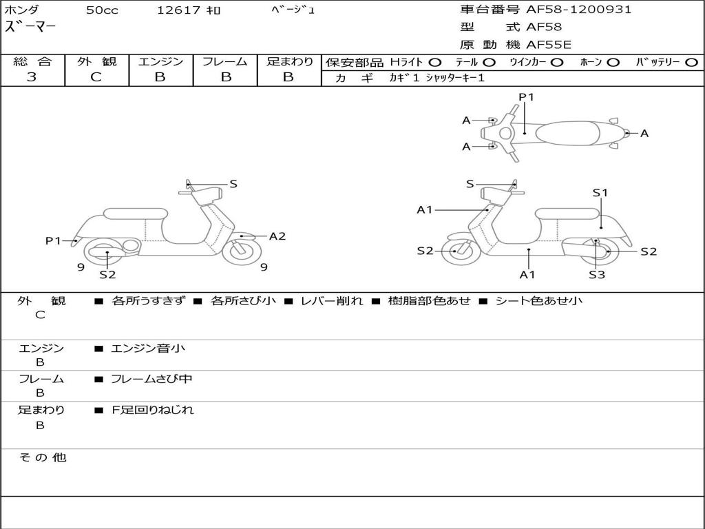 | Номер рамы / VIN | AF58-1200931 |
