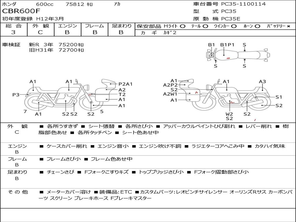 | Номер рамы / VIN | PC35-1100114 |