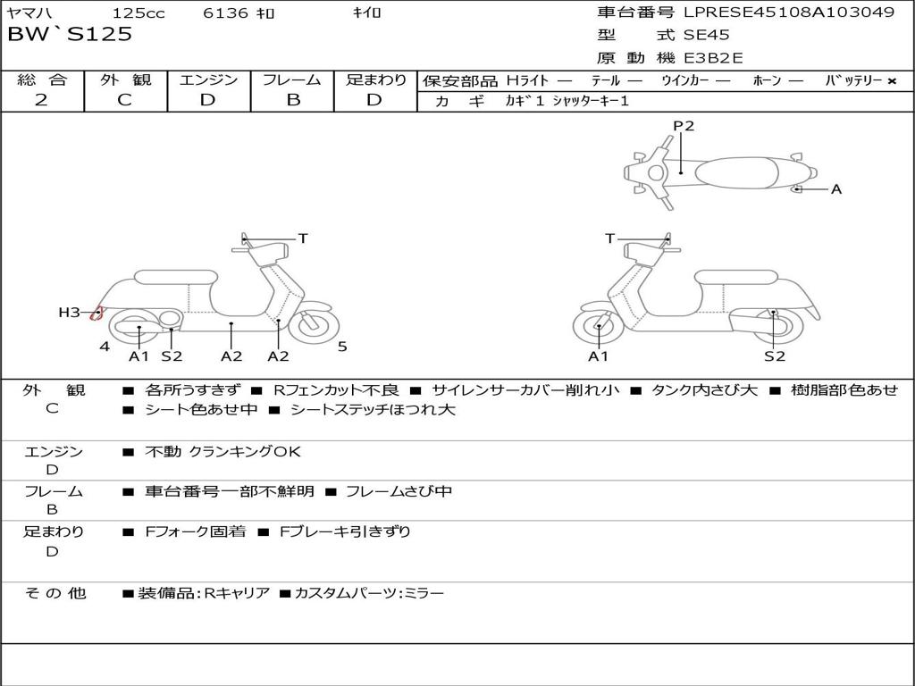 | Номер рамы / VIN | LPRSE45108A103049 |