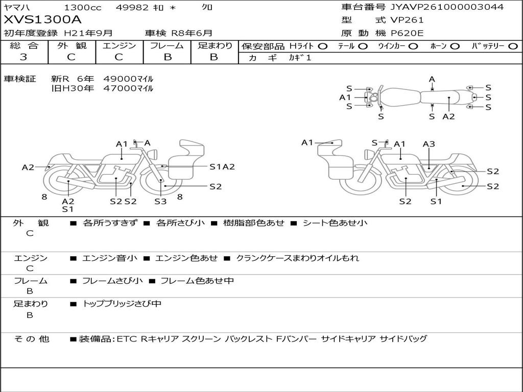 | Номер рамы / VIN | JYAVP261000003044 |
