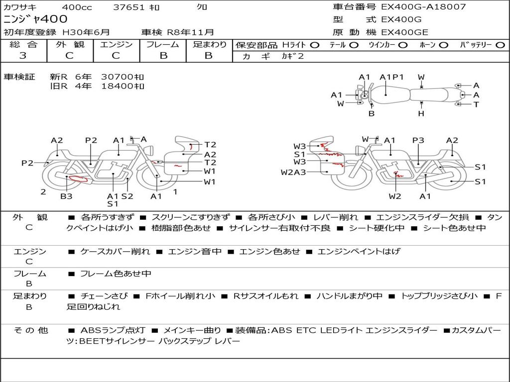 | Номер рамы / VIN | EX400G-A18007 |