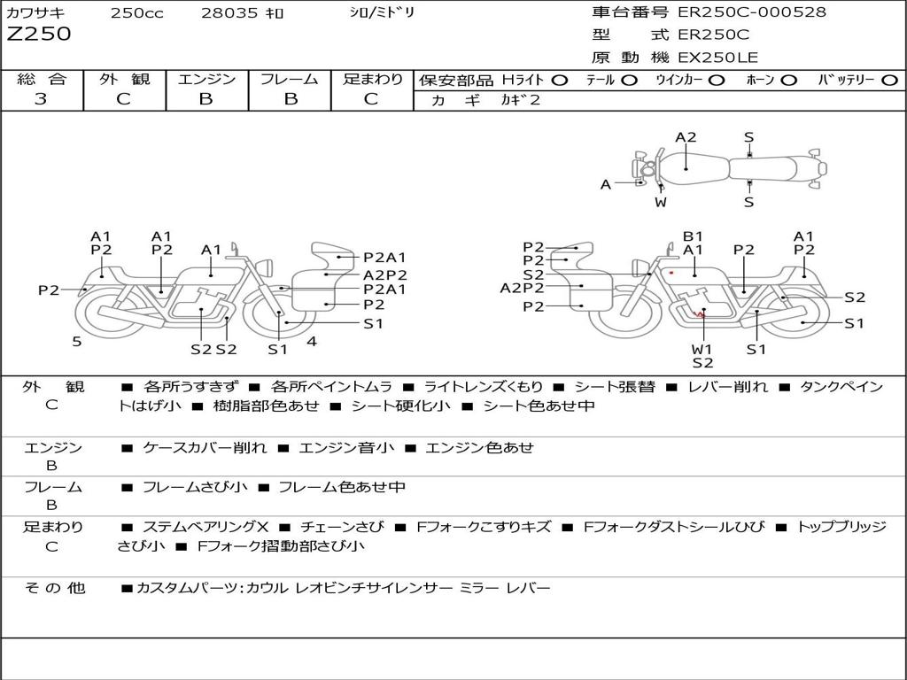 | Номер рамы / VIN | ER250C-000528 |