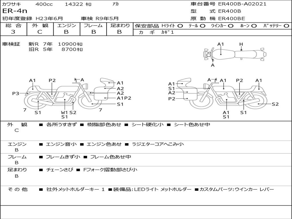 | Номер рамы / VIN | ER400B-A02021 |