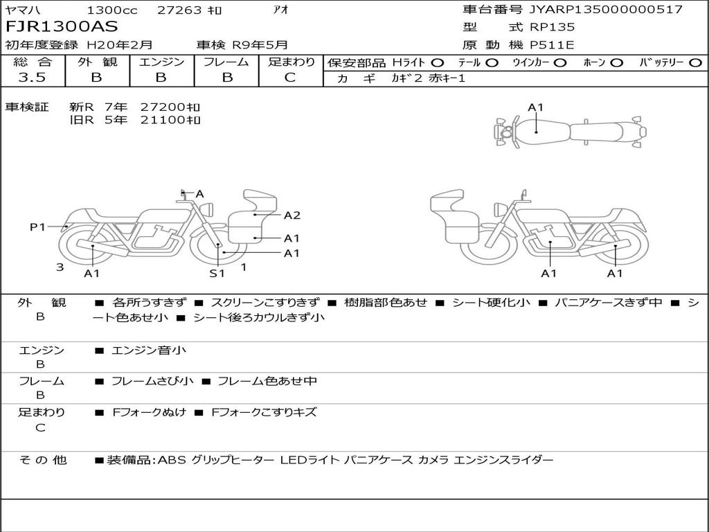 | Номер рамы / VIN | JYARP135000000517 |