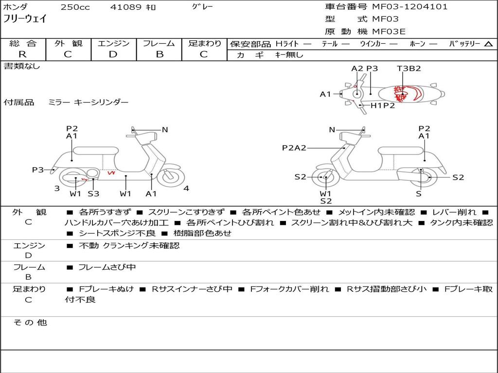 | Номер рамы / VIN | MF03-1204101 |
