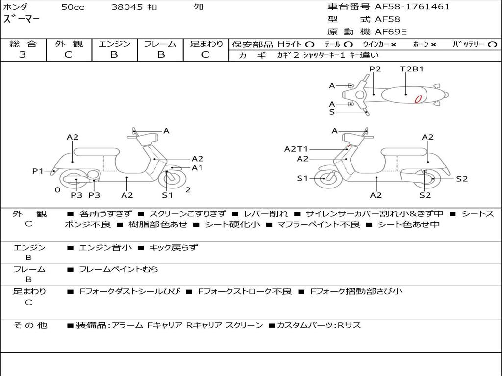 | Номер рамы / VIN | AF58-1761461 |
